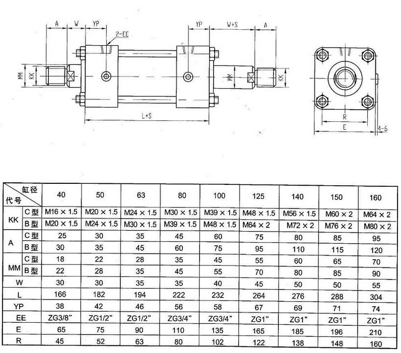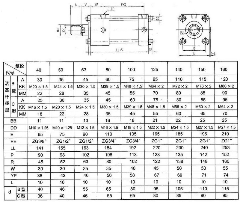 型号、规格标注:型号-缸径×行程-安装形式-□-注:标注W表示用进口密封圈,不标注W表示用国产密封圈。