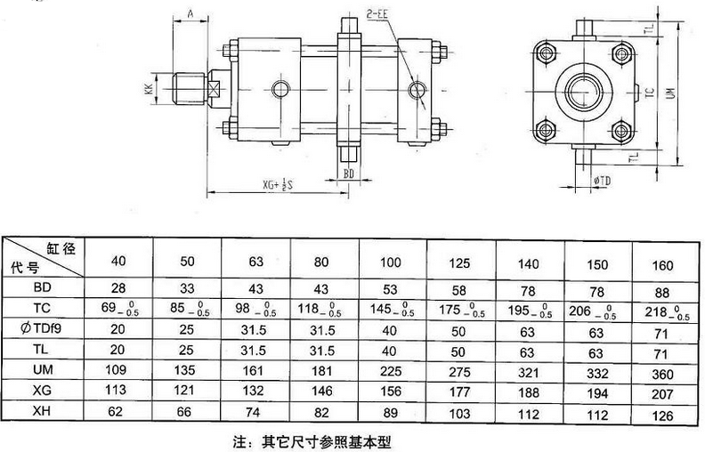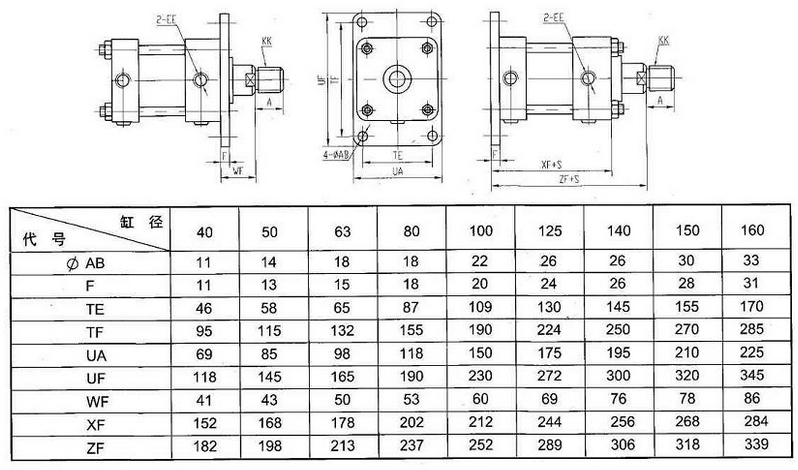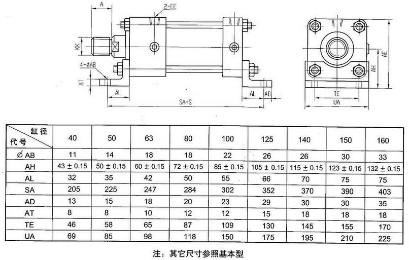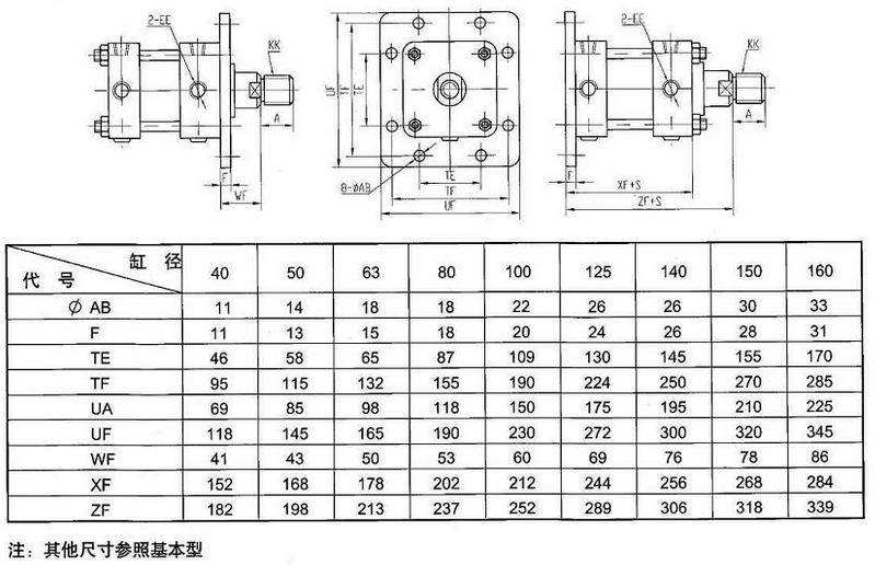 本产品可与采用日本JISB8354-1992标准安装形式及尺寸的直接互相使用。