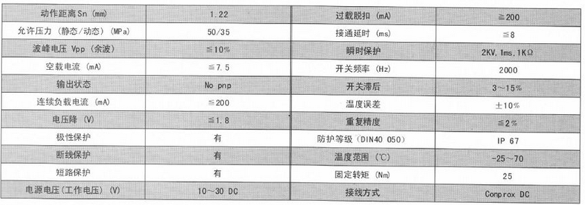 接近开关技术特性